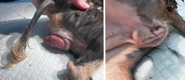 Ujali jsme se zubožené fenečky, která měla vyhřezlou pochvu, splstnatělou srst ,začervená a zablešená.